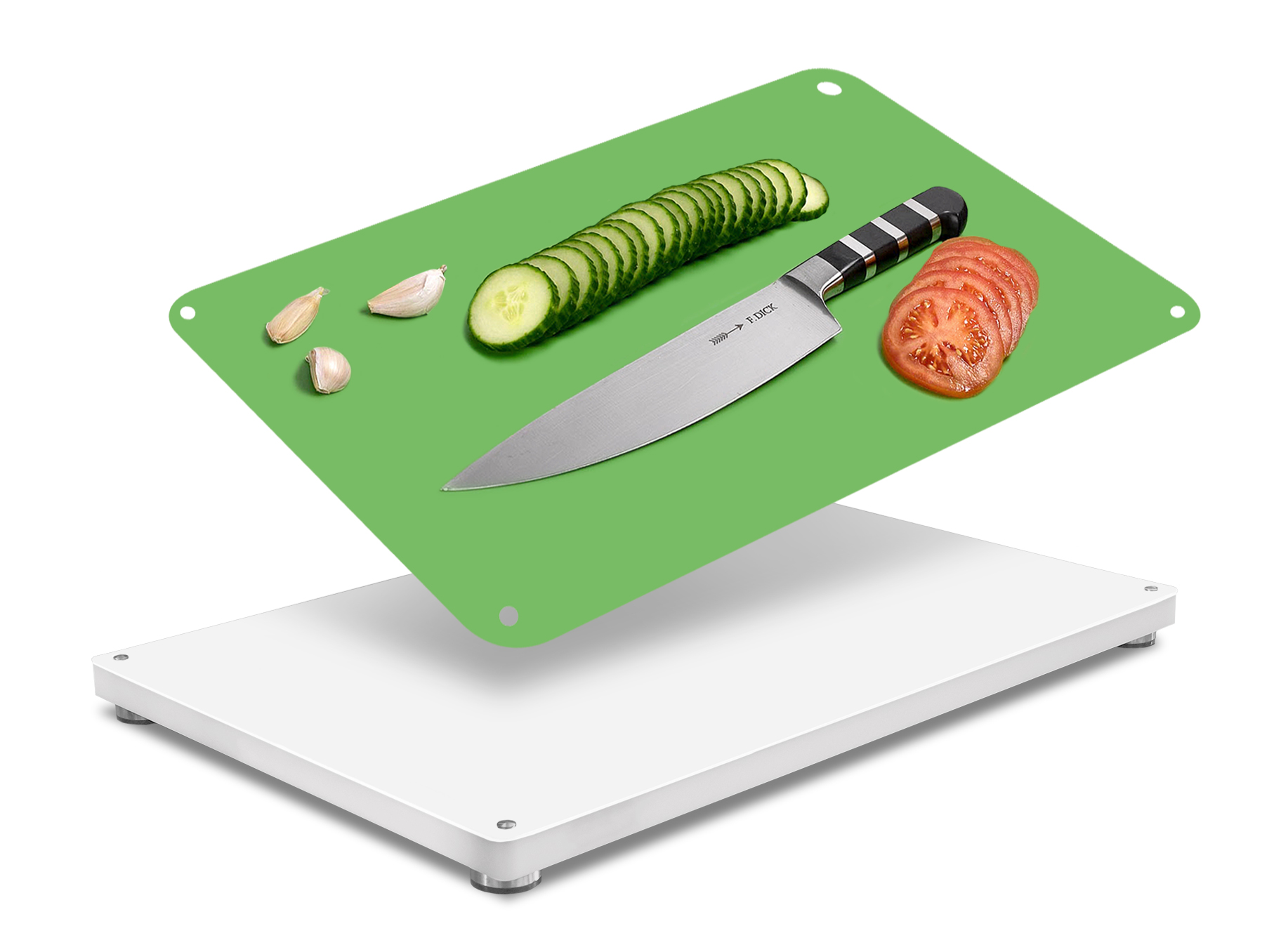 Profboard Professional Series 270 cutting boards were developed for professional chefs and food enthusiasts. All materials have been approved for food and can be re-utilized or disposed of in an environmentally friendly manner. Series 270 comes with six replaceable sheets in food safety colours. Series 270 can also be diversified with additional accessories, including our carving board and chopping board.
