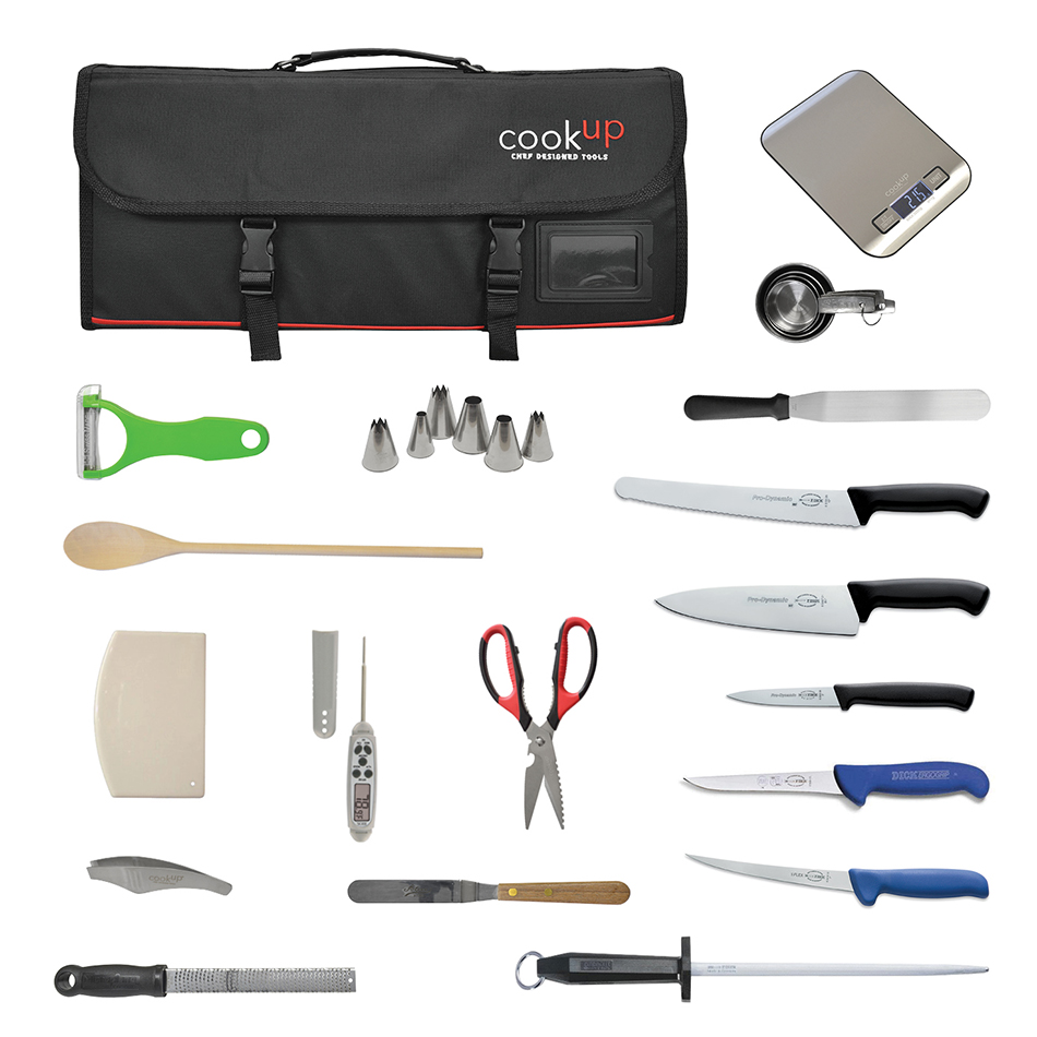 Our Culinary kit comes complete with a quality roll bag and 35 essential culinary tools.