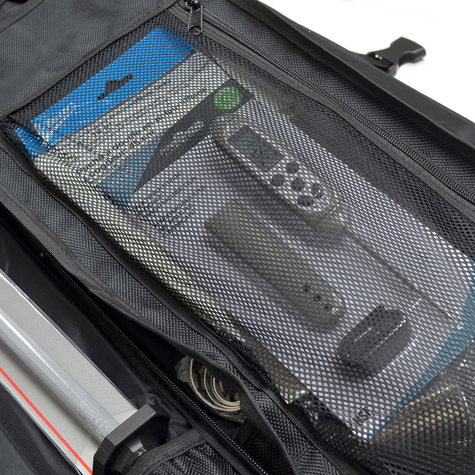 Our roll bag features durable lining, multiple compartments, zipper pockets, a sturdy carrying handle and detachable shoulder strap.