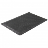 Slip resistant diamond plate surface laminated to long lasting anti-fatigue PVC foam. Provides comfort for a full work day.