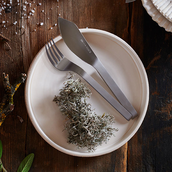 The Pure Metal steak and dinner fork impresses with 4 longer, sturdy tines. These are perfect for holding and picking up thick pieces of meat. The weight is evenly distributed so that the fork is balanced and comfortable in the hand. The slightly wider shape of the fork is ideal for cutting potatoes and vegetables. The design of the fork follows the clear line and styling of the AJAX Pure Metal knife.
