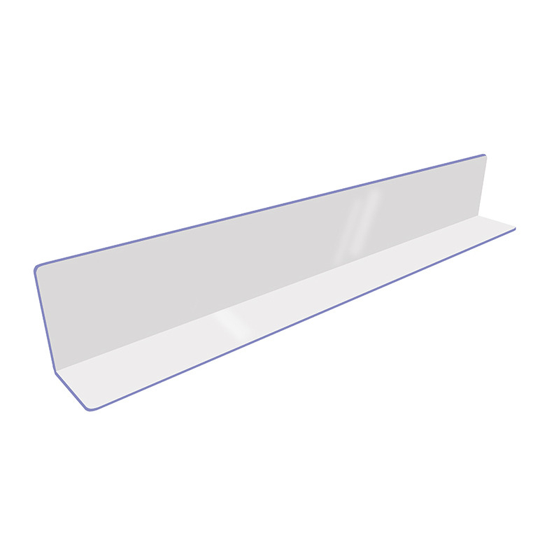 Acrylic "L" shape product stop. 5" x 47.25" x 7"